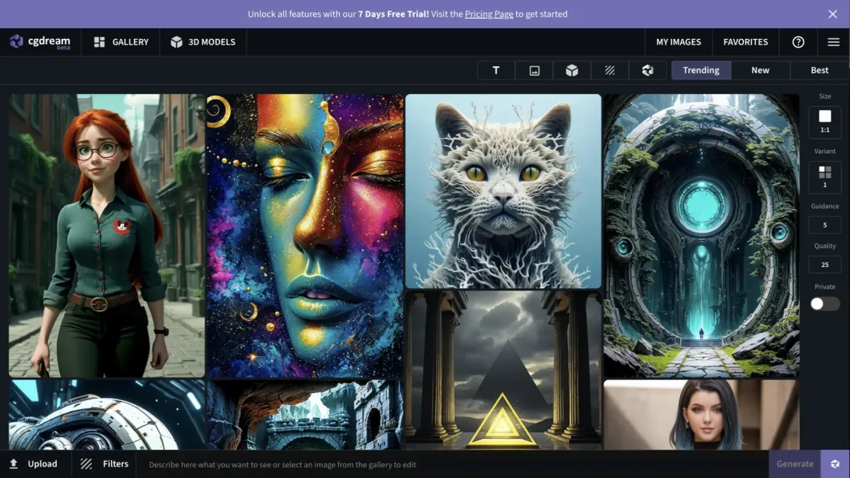 CGDream is an innovative platform that transforms your ideas into breathtaking 3D art using advanced AI technology, making artistic creation accessible to everyone.
