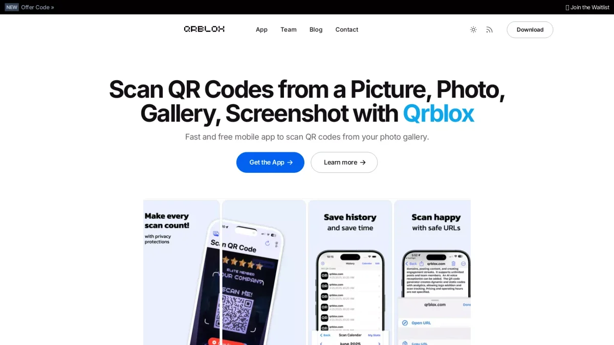 Qrblox is a fast and free app that allows users to scan QR codes directly from their photo gallery, enhancing accessibility and convenience.