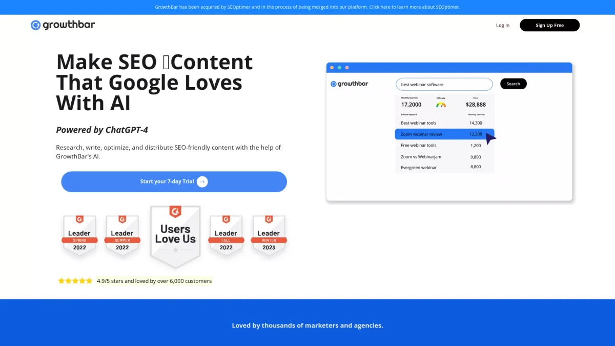 GrowthBar is an AI-powered SEO tool that simplifies keyword research, content optimization, and competitor analysis for marketers and content creators.