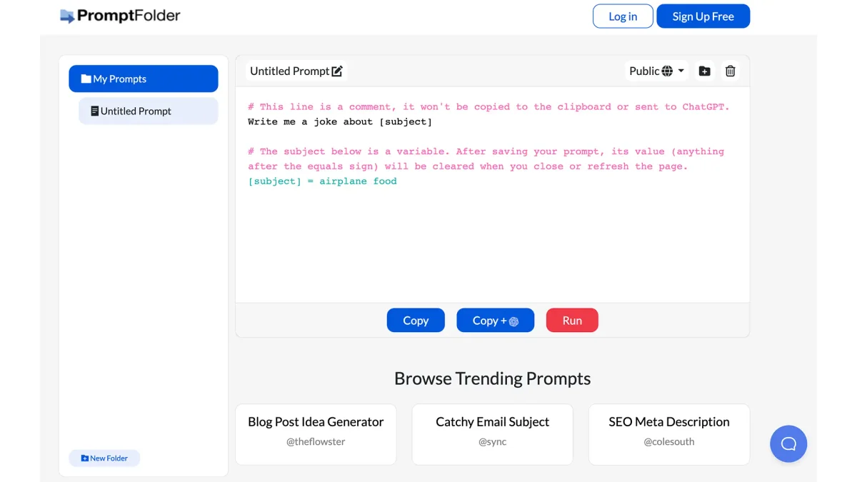 Manage and optimize your AI prompts for ChatGPT, Midjourney, and more with ease using PromptFolder's intuitive interface and tools.