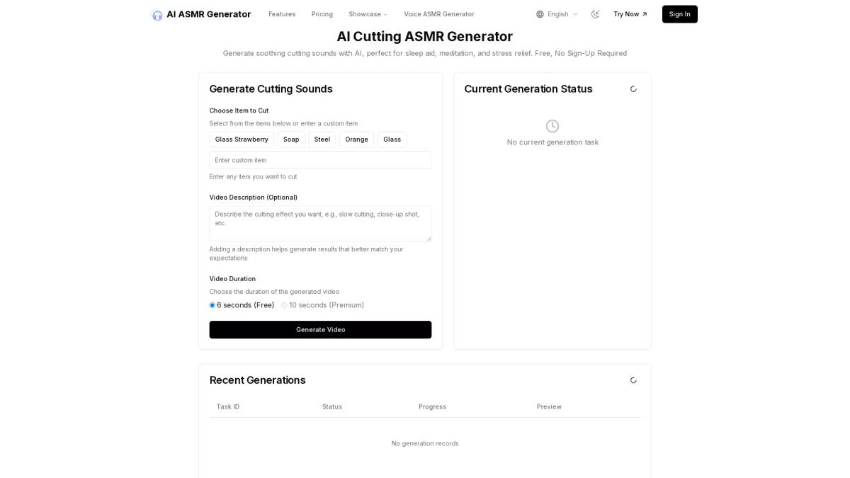 Generate soothing ASMR content for sleep, meditation, and relaxation using advanced AI technology, all without the need for sign-up or downloads.