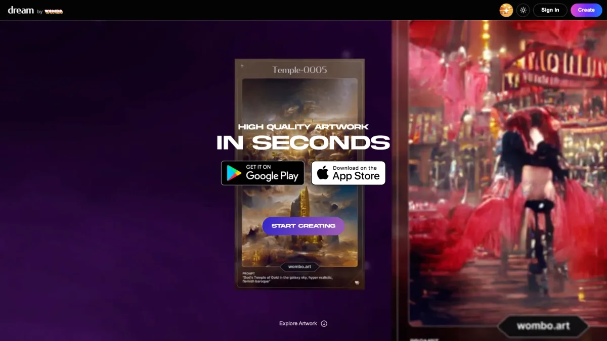 Dream by WOMBO empowers users to create stunning artwork effortlessly using advanced AI technology, perfect for artists and enthusiasts alike seeking inspiration and unique designs.