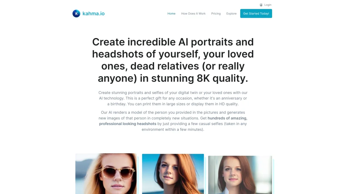 Kahma uses advanced AI technology to create professional-grade headshots from casual photos, perfect for enhancing your online presence in minutes.