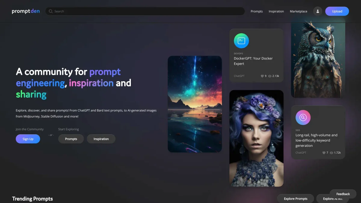 Explore, discover, and share prompts for ChatGPT, Claude, and AI-generated images, enhancing creativity and collaboration in a vibrant community.