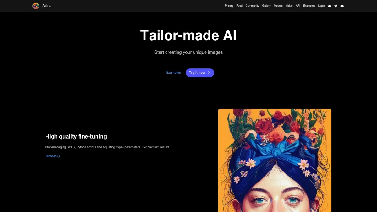 AstriaAI offers advanced generative imaging solutions, enabling users to create personalized and high-quality images for various applications including photography, design, and marketing.
