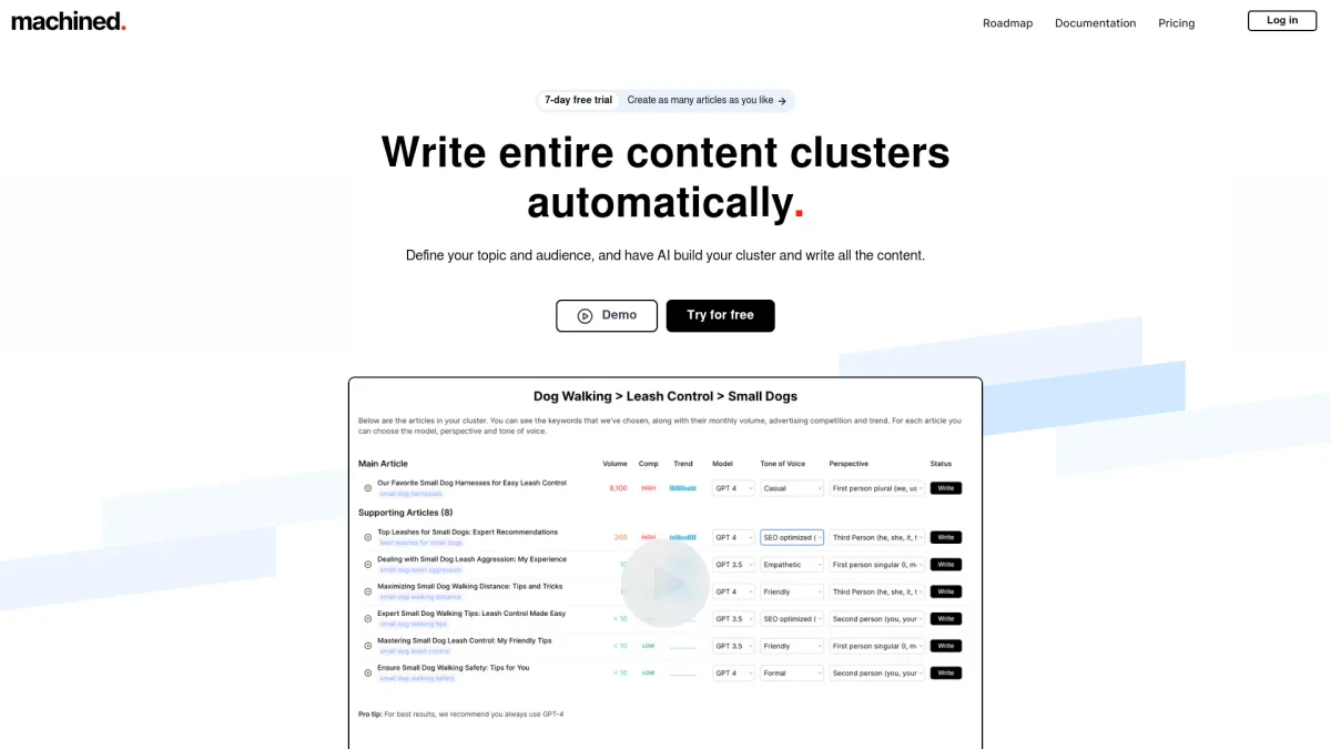 MachinedAI is a powerful platform that automates keyword research, content clustering, and article publishing to enhance your SEO strategy effortlessly.