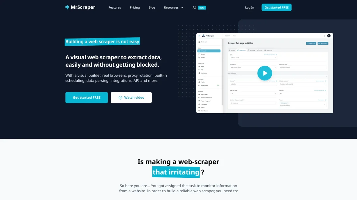 MrScraper automates data extraction from any website, providing clean, structured results while bypassing anti-bot systems and ensuring secure data handling.