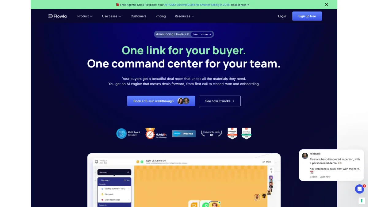 Streamline your sales and onboarding processes with Flowla's AI-driven digital sales rooms, designed to boost efficiency and collaboration effortlessly.