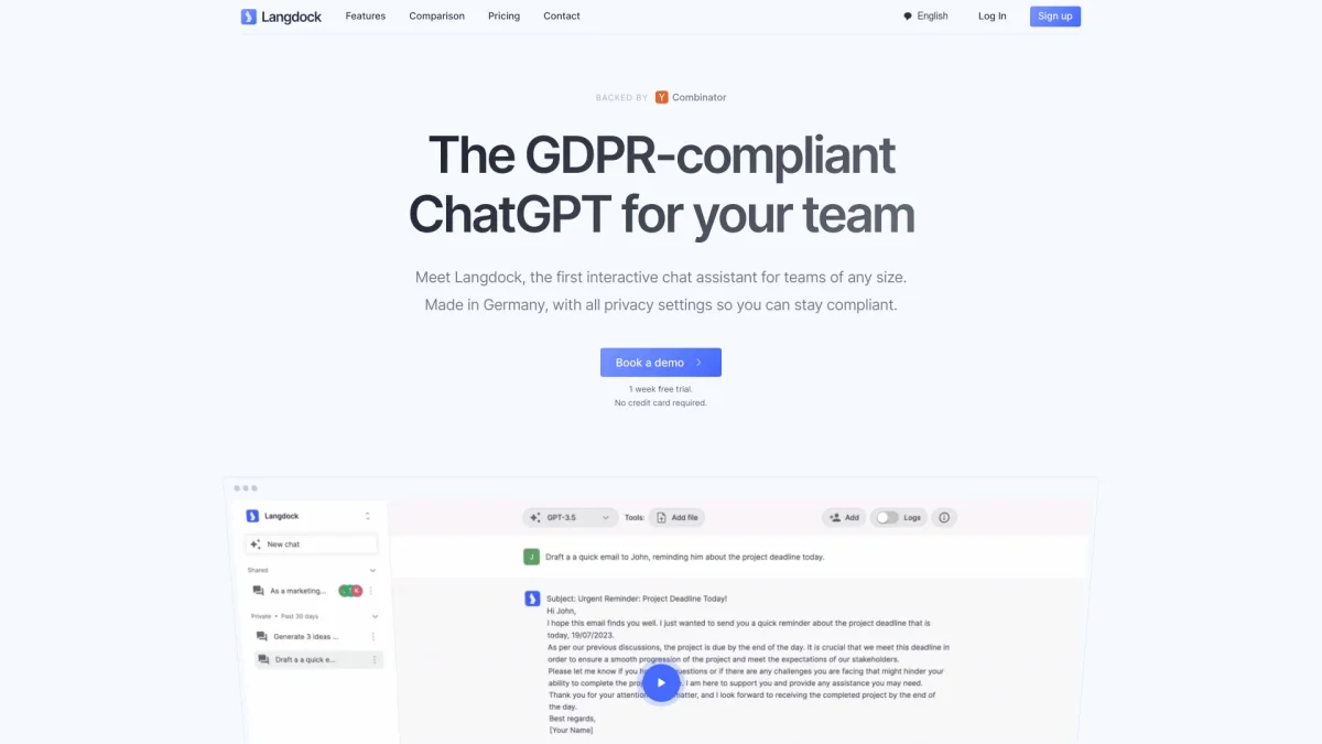 Langdock provides a platform for seamless AI integration, enabling organizations to automate workflows and enhance productivity through customized AI solutions tailored for diverse teams.