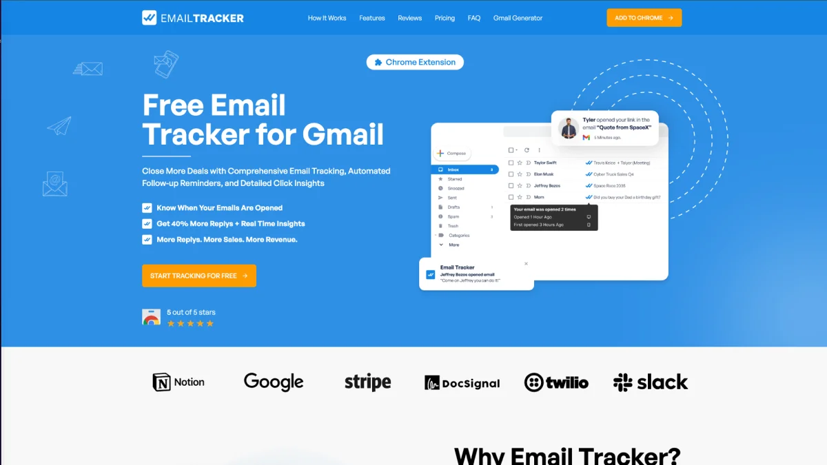Email Tracker enhances your Gmail experience with real-time tracking, automated follow-up reminders, and detailed insights to boost your email outreach effectiveness.
