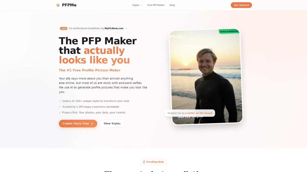PFPMe is a free AI-powered profile picture maker that generates personalized avatars for all social media platforms in under 10 seconds, no signup required.