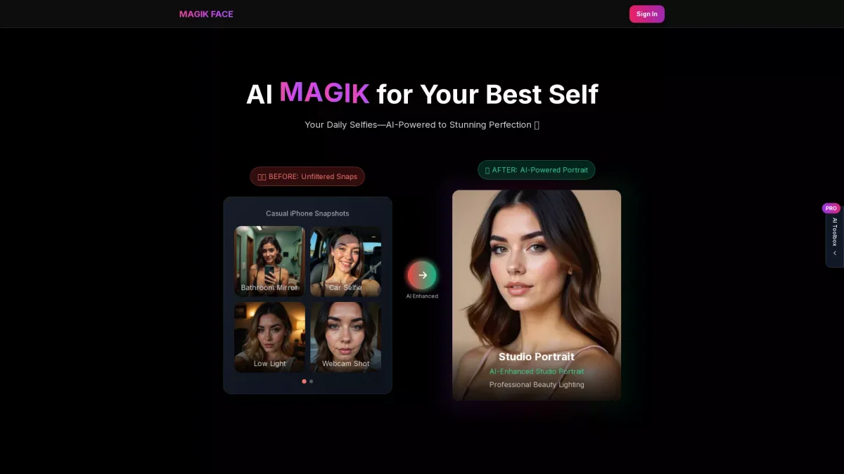 MagikFace is an AI platform that creates custom face models, transforms portraits, and generates unique characters from photos without any coding required.