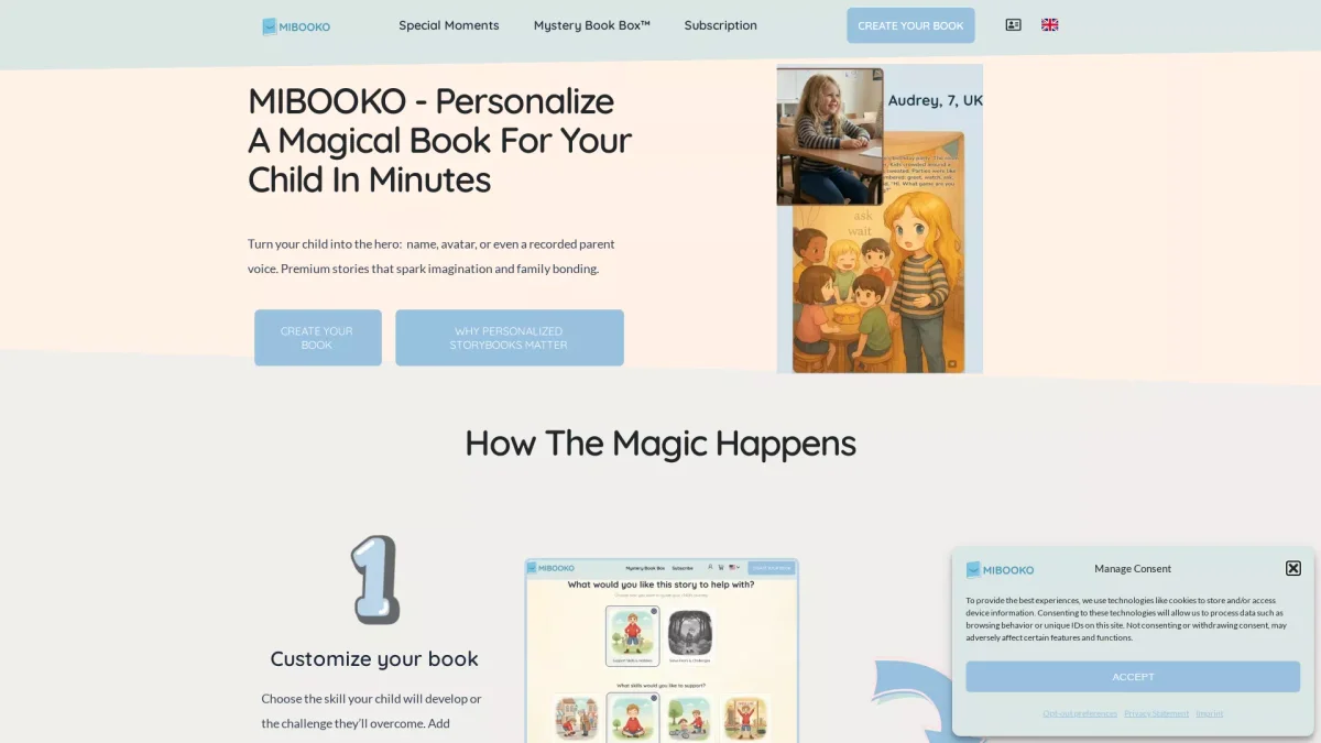 MIBOOKO creates personalized storybooks, allowing children to become heroes in their own adventures, fostering engagement and emotional growth through tailored narratives.
