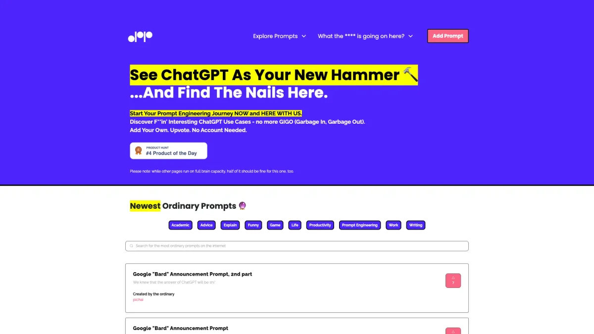 Unlock your creativity with OrdinaryPeoplePrompts, providing unique prompts tailored for various needs, helping users spark imagination and overcome creative blocks.