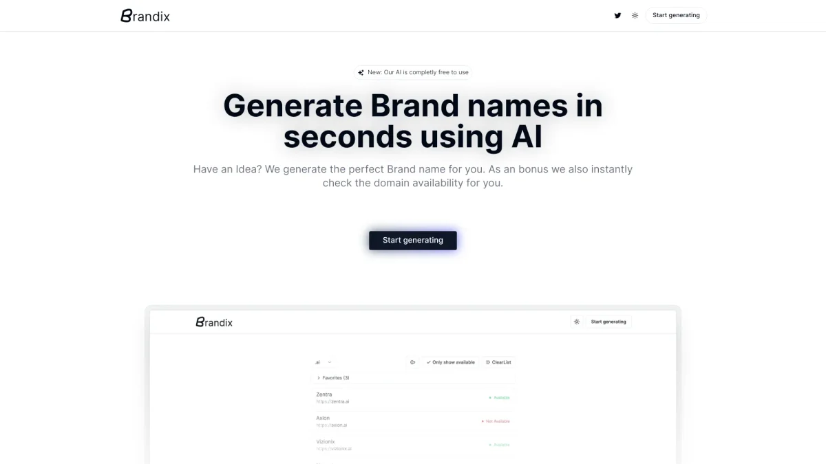 BrandixAI helps you generate unique and relevant names for your brand, startup, or app with ease and creativity.