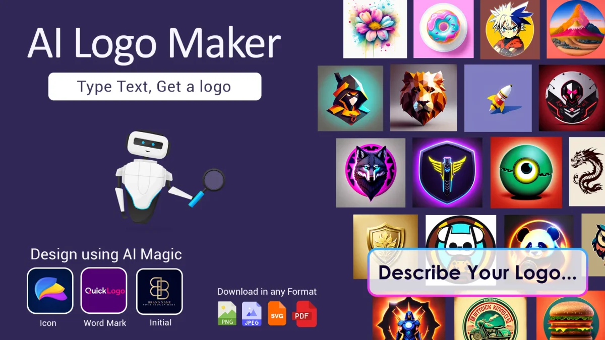 AI Logo Maker empowers users to effortlessly design stunning logos tailored to their brand identity using advanced generative AI technology.