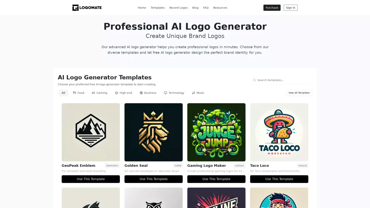 LogoMate empowers users to design professional logos effortlessly, using advanced AI technology and a vast selection of customizable templates tailored to various industries.