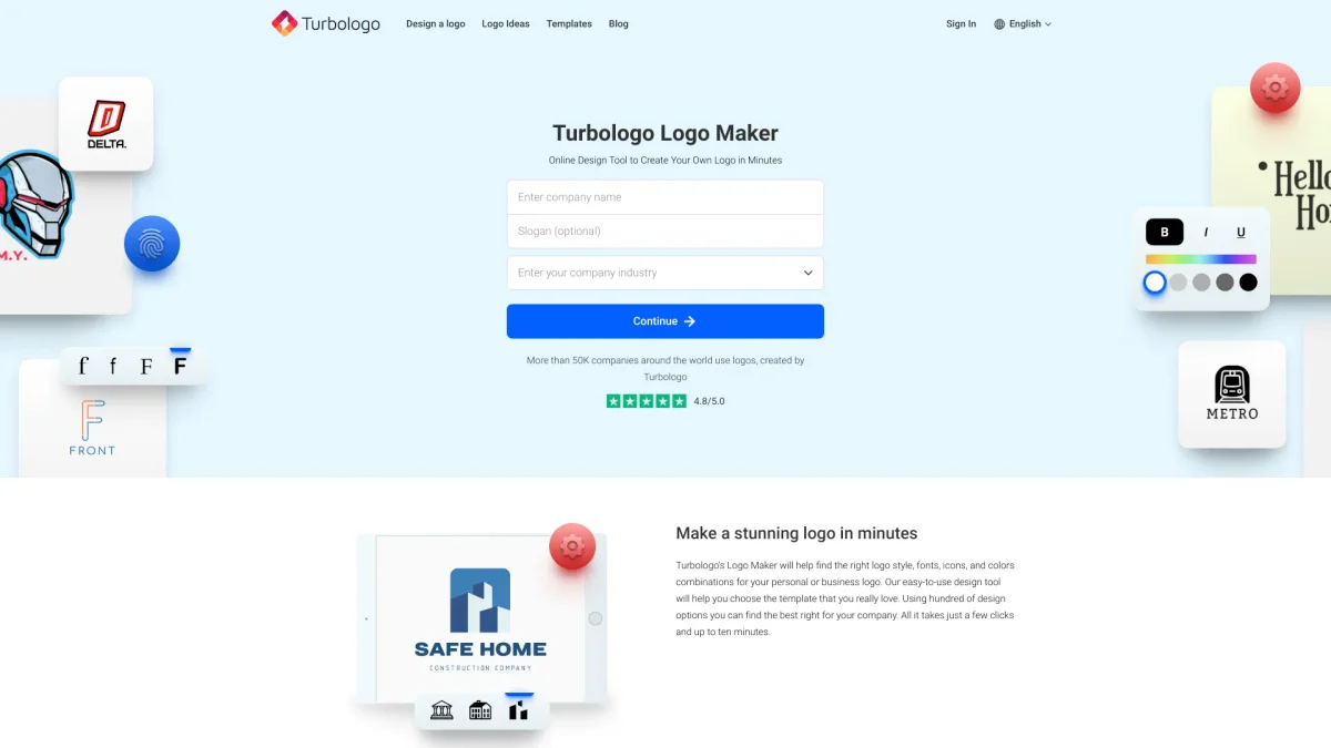 Turbologo simplifies logo creation with AI-driven design tools, enabling users to craft unique logos in minutes without graphic design expertise.