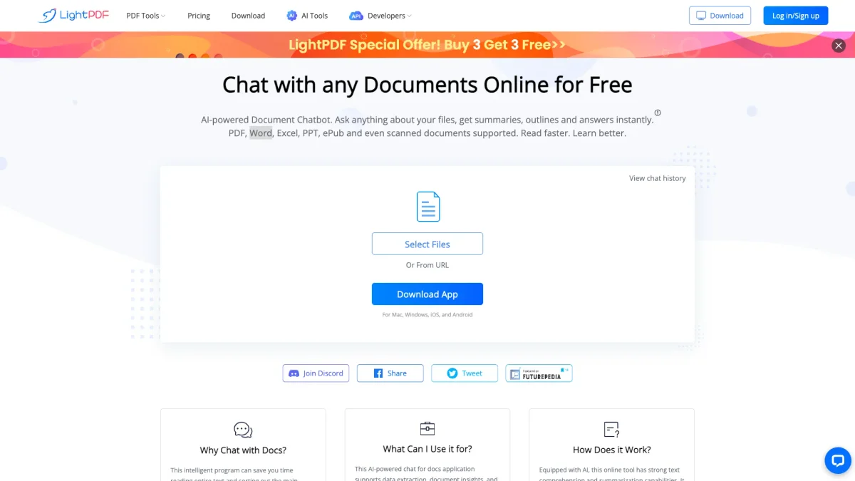 LightPDF is a powerful AI tool that allows users to chat with PDF documents, providing instant answers and summarizations for enhanced productivity.