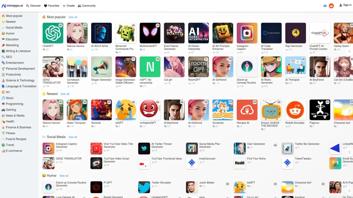 Miniapps enables users to discover, create, and utilize free AI-powered mini applications, enhancing productivity and creativity across various tasks and needs.