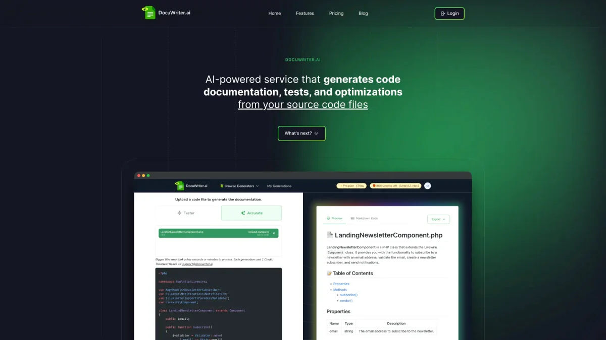 Docuwriter is an AI-powered tool that automates the generation of code documentation, making it faster and more efficient for developers and teams.