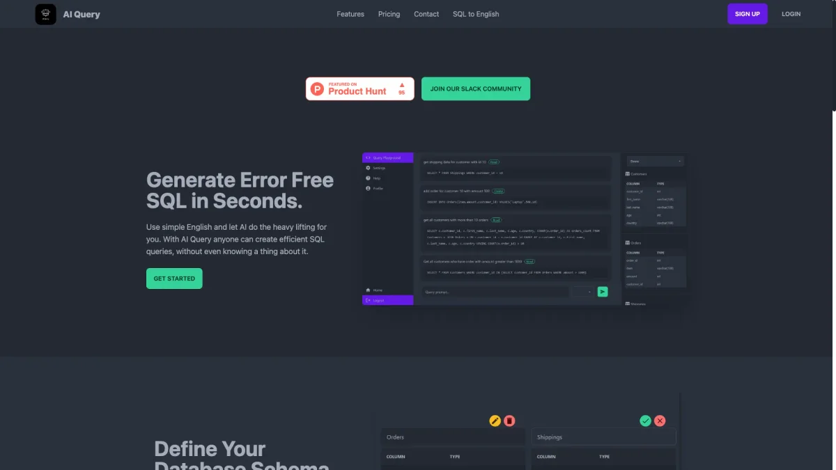 AI Query simplifies SQL query generation, enabling users to create efficient queries in seconds using simple English without prior knowledge of SQL.