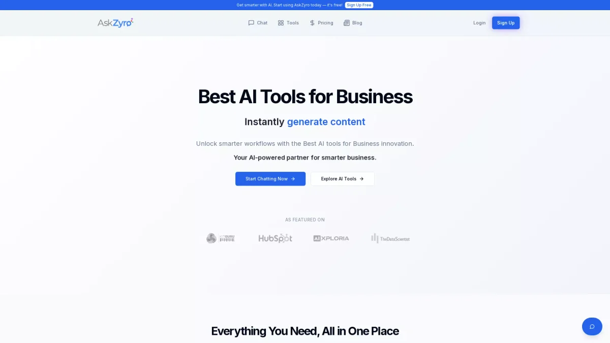 Unlock your business potential with AskZyro's AI tools for content creation, lead generation, and workflow automation, all designed to enhance productivity and efficiency.