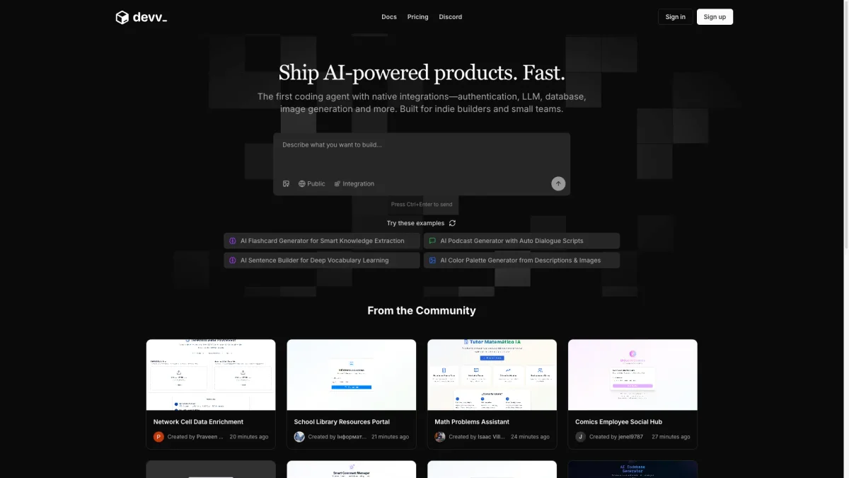 Devv is the first AI coding agent designed to help users create full-stack AI products, streamlining the development process with intelligent automation.
