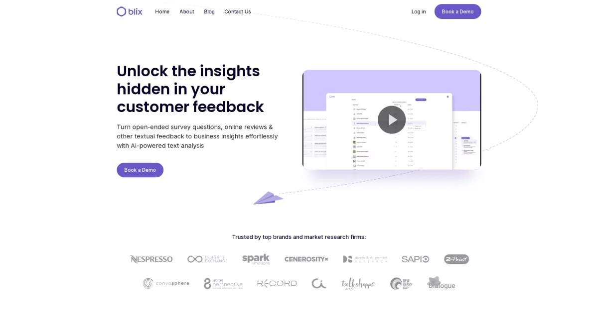 Blix transforms tedious text analysis into actionable insights quickly and efficiently, empowering researchers and businesses to leverage customer feedback effectively.
