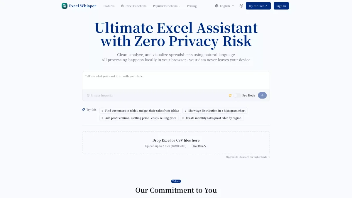 Excel Whisper utilizes AI to analyze spreadsheets privately, allowing users to perform complex tasks effortlessly using natural language.