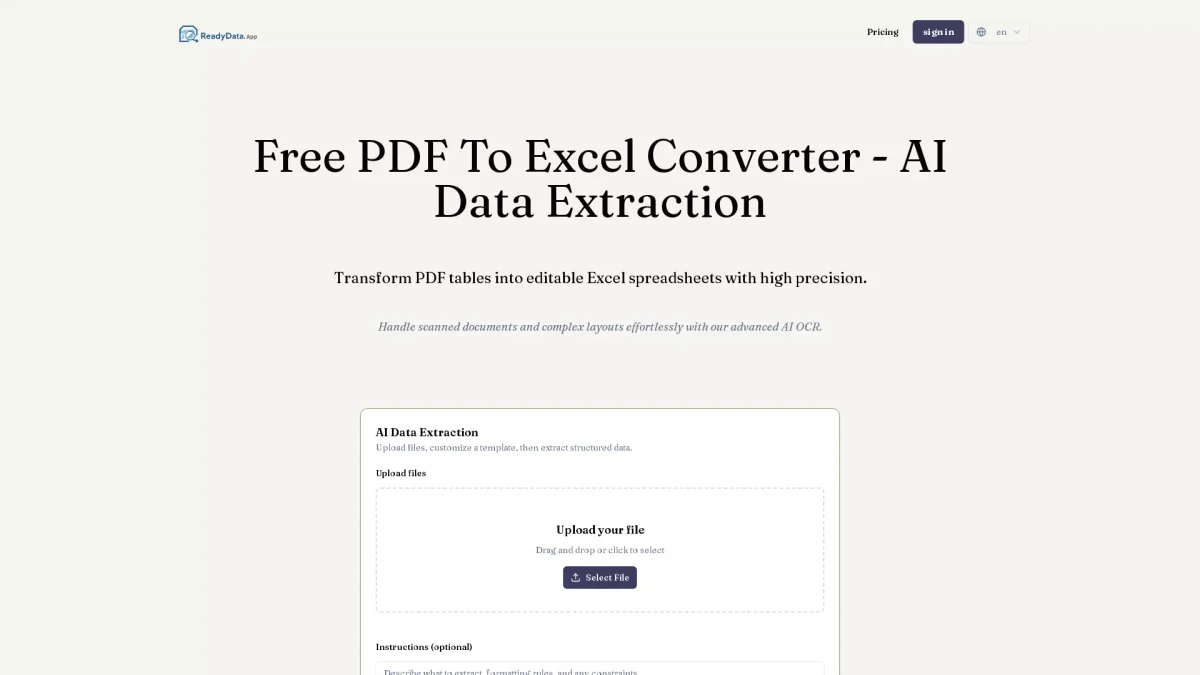 Transform PDF tables into editable Excel spreadsheets with high precision using advanced AI data extraction technology, even from scanned documents and complex layouts.