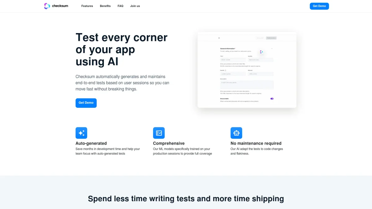 ChecksumAI enables seamless integration of automated testing, allowing teams to ship code faster while ensuring high quality and minimal maintenance.