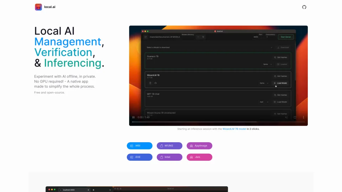 LocalAI is a native app that simplifies AI management, verification, and inferencing, allowing users to experiment with AI tools without requiring a GPU.