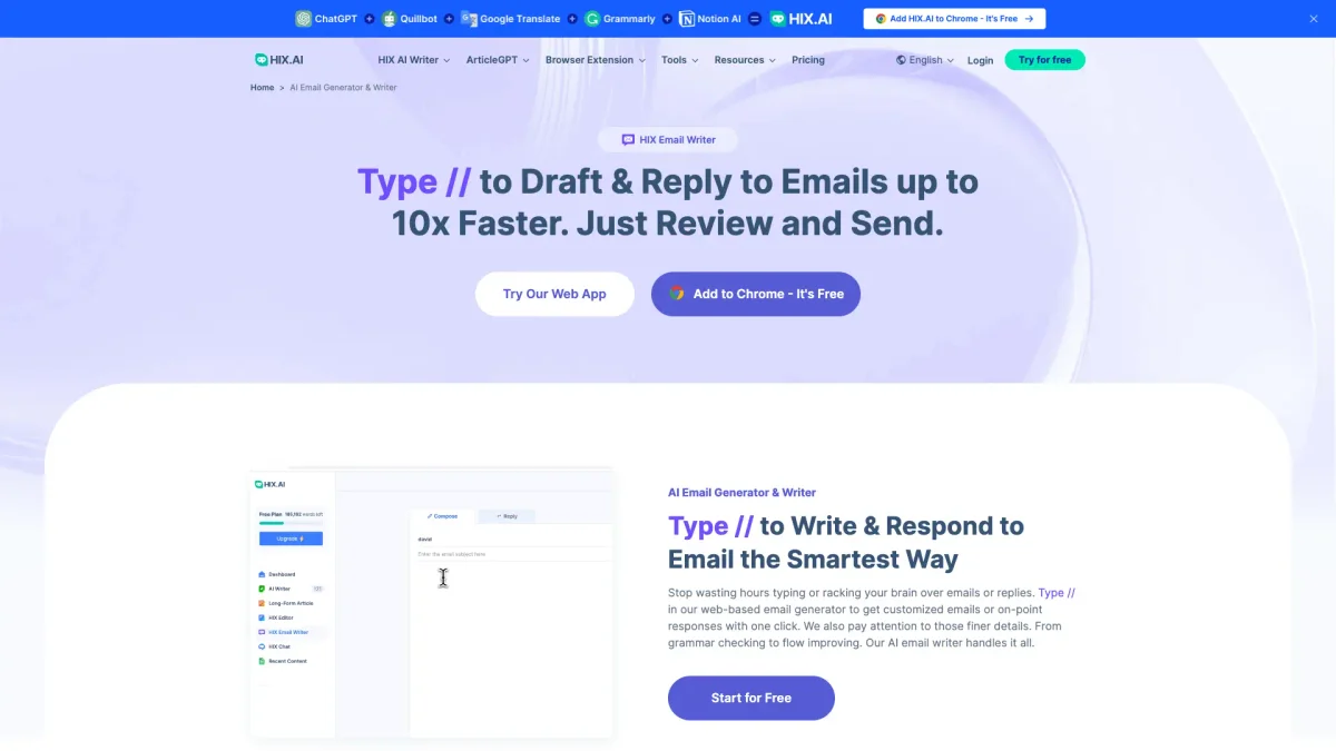 HIX Email Writer streamlines your email composition process, using AI to generate professional emails quickly and efficiently, saving you time and enhancing communication.