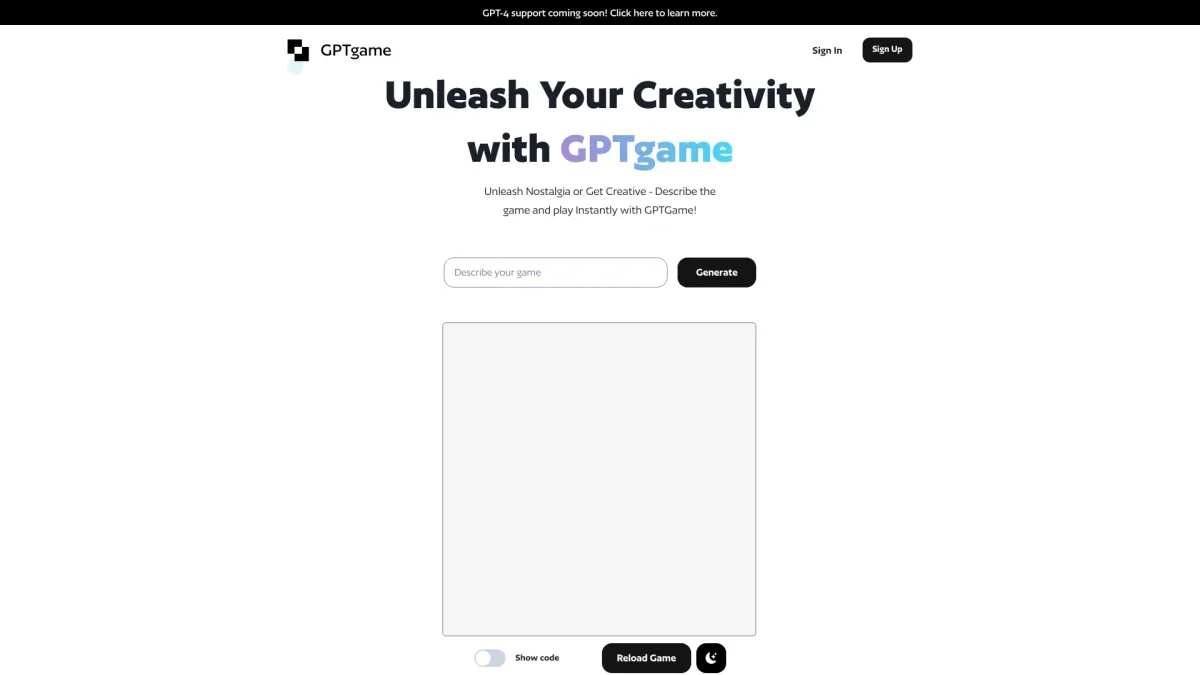 GPTGame enables users to generate and play various games immediately, transforming the gaming experience with AI-powered game creation.