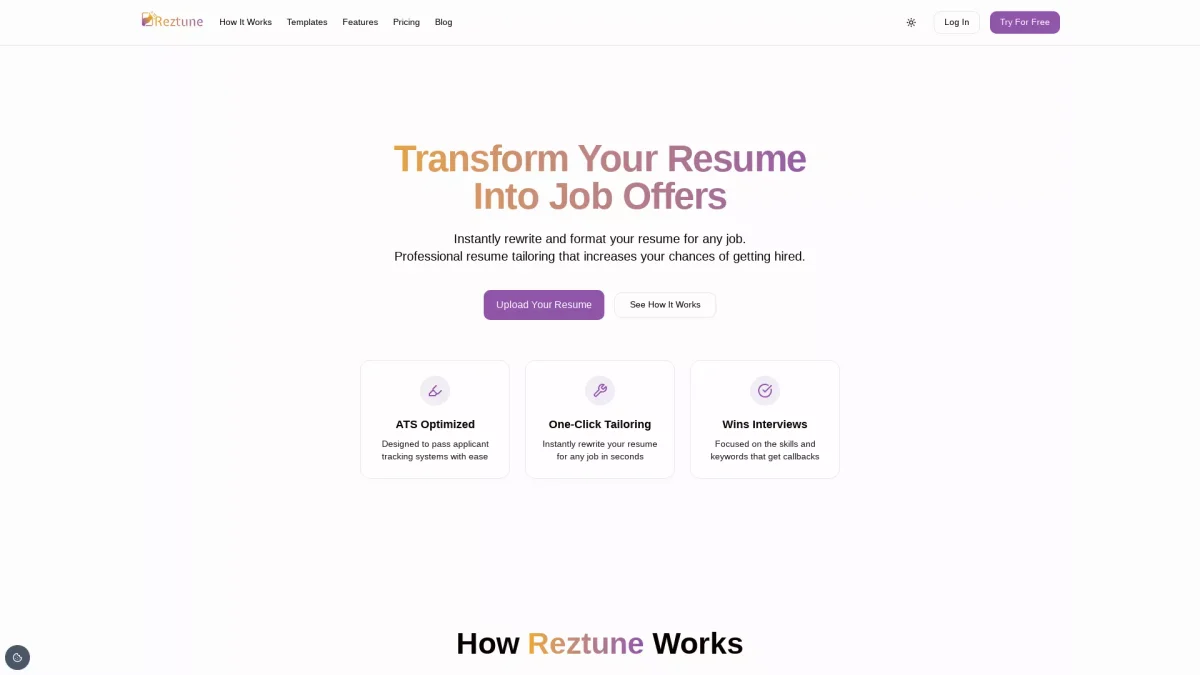 Reztune enhances your resume to match job descriptions, boosting your chances of landing interviews with tailored, ATS-optimized formats.