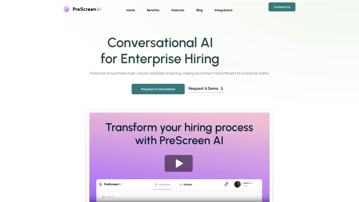 PreScreenAI automates candidate screening, enhancing recruitment efficiency for enterprise teams by streamlining high-volume hiring processes and improving decision-making capabilities.