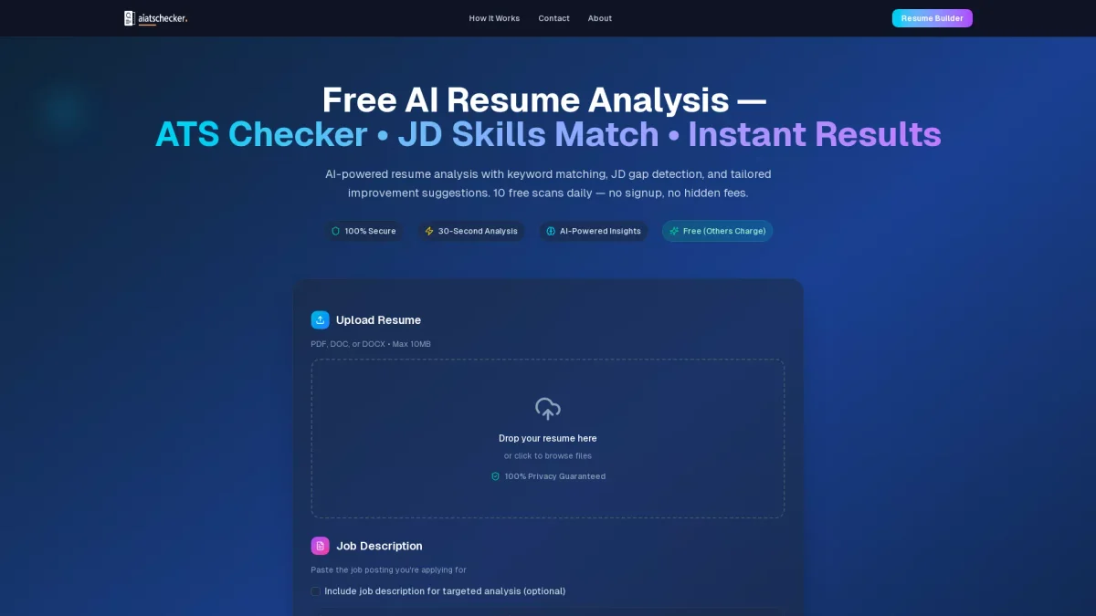 AI ATS Checker offers free, AI-driven resume analysis to optimize your job applications and improve your chances of getting hired by matching ATS requirements.