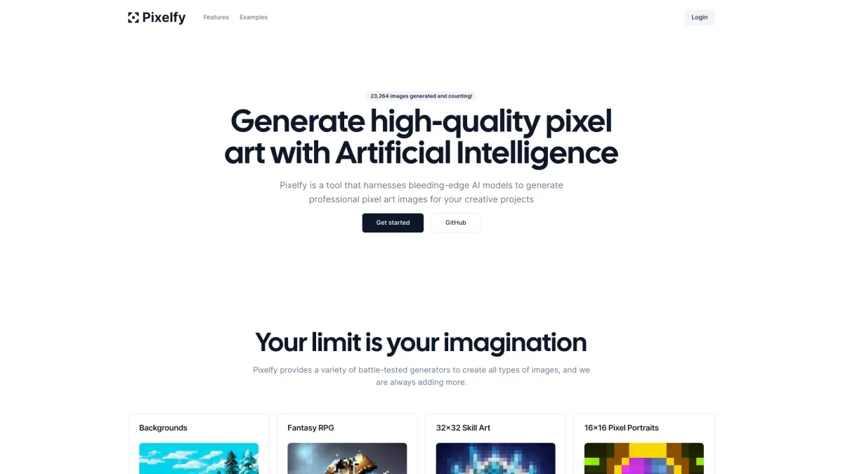 PixelfyAI empowers users to generate high-quality pixel art images using advanced AI models, perfect for various creative projects and artistic endeavors.