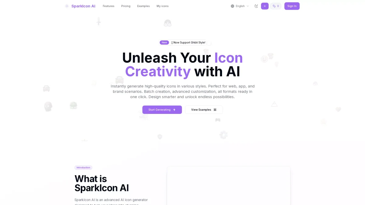 Create, organize, and enhance unique icons with SparkIcon AI, an all-in-one platform designed for modern designers and developers.