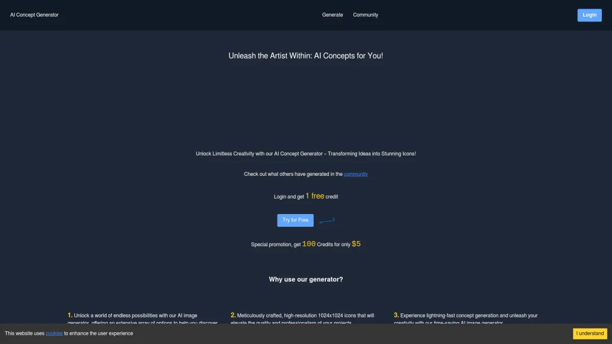Transform your ideas into stunning high-resolution icons effortlessly with AIConcept Art's innovative image generator, tailored for diverse creative needs.