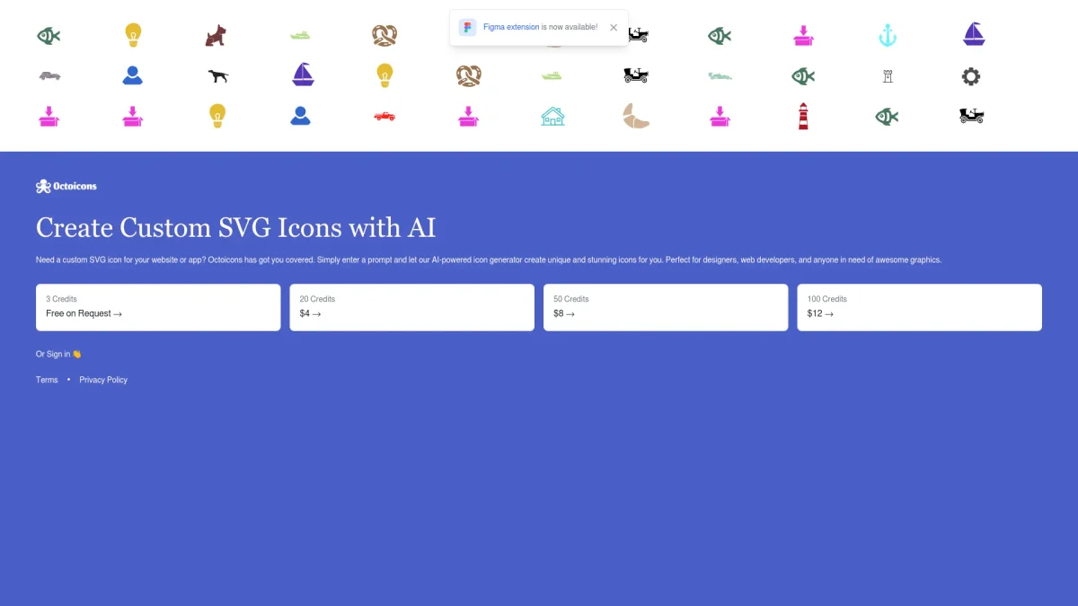 Create unique SVG icons for your projects effortlessly using Octoicons' AI-powered icon generator designed for designers and developers alike.