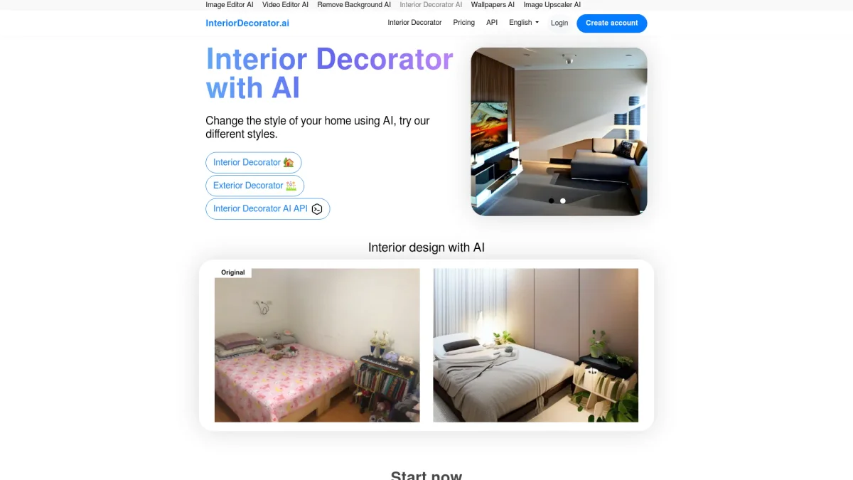 Interior Decorator AI allows you to redesign interiors and exteriors instantly using advanced AI technology, offering a variety of styles and room types for stunning results.