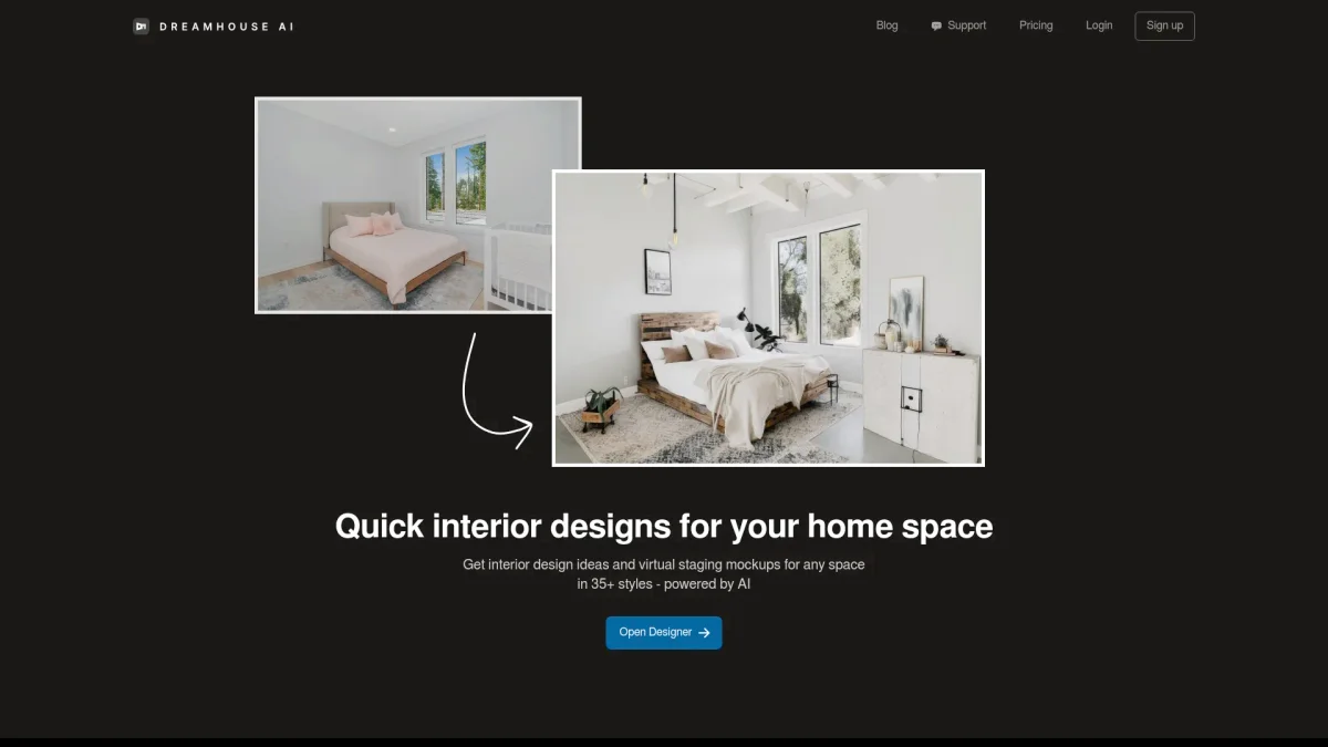HomeDesignsAI revolutionizes interior and exterior design with AI, enabling users to effortlessly visualize and redesign their spaces in under 30 seconds.