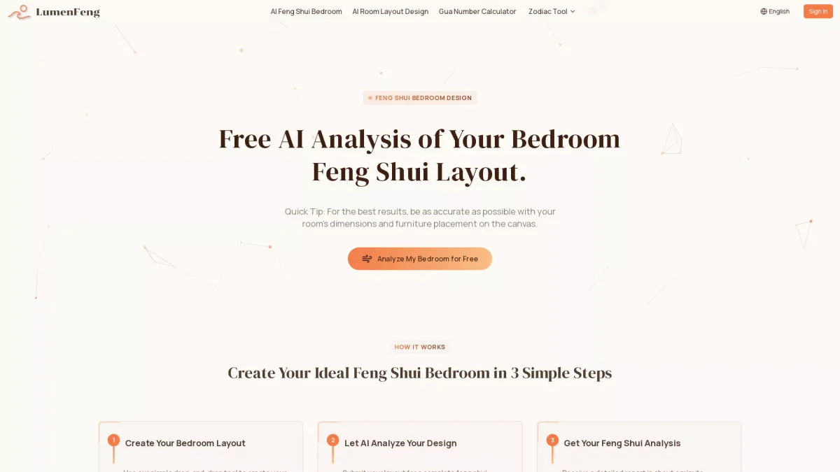 Discover optimal bedroom layouts and enhance positive energy with LumenFeng's AI-driven Feng Shui analysis and layout generator.