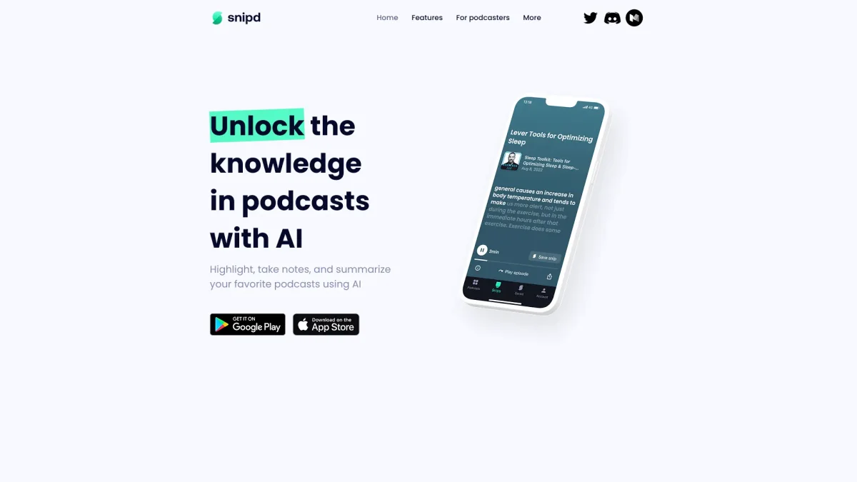 Snipd is an AI-powered podcast app that helps you save insights, chat with episodes, and discover key highlights effortlessly while learning on the go.