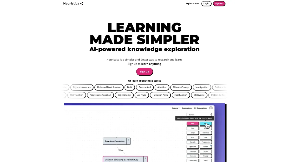 Heuristica combines concept maps, flashcards, and AI chat to enhance learning for students, researchers, and educators, making studying more efficient and effective.