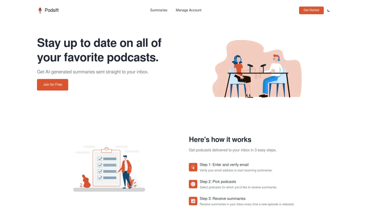Receive concise, AI-generated summaries of your favorite podcasts directly to your inbox, keeping you informed without the time commitment.