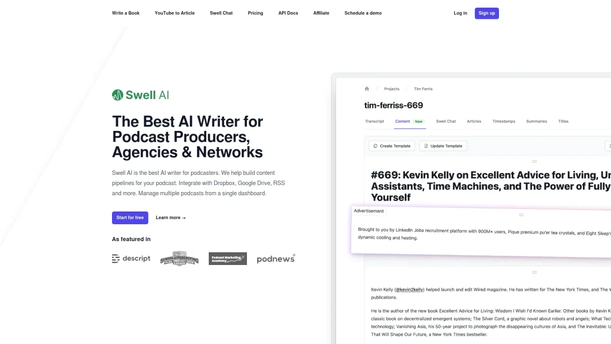 Swell AI repurposes audio and video into engaging written content for various marketing channels, streamlining your content creation process effortlessly.