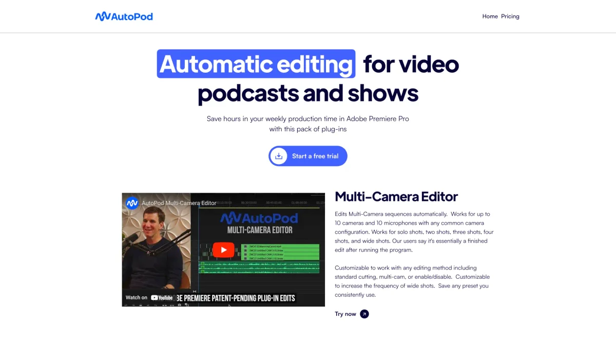 AutoPod simplifies video podcast editing, allowing creators to focus on content while it handles the technical details automatically.